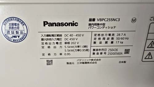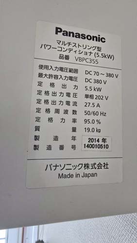 吹田市江坂町 パナソニック パワコンディショナ マルチストリング型VBPC355→パナソニック パワコンディショナ屋内用集中型VBPC255NC3 パワコン交換工事